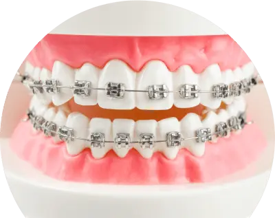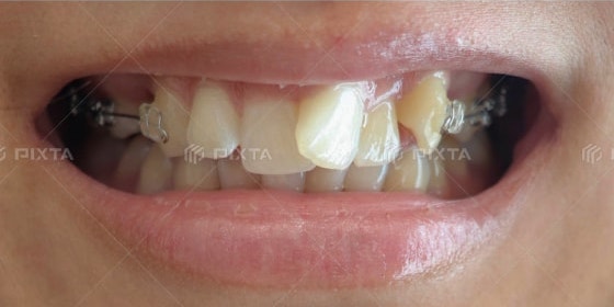 歯に小さな金属のパーツを取り付けて、ワイヤーで結びつけて歯を整えていく昔からある矯正方法です。この方法は、重度に複雑な歯並び、ねじれた歯にも効果を発揮する強みがあります。ただ、金属のパーツやワイヤーが目立つため、見た目に対する懸念があります。また、食べ物が挟まりやすく、歯磨きやフロスが通常より手間がかかる点がデメリットとして挙げられます。
